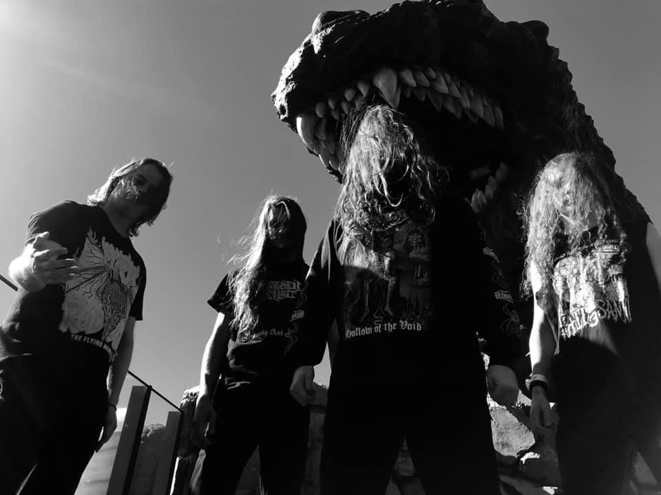 The awesomeness of kaiju movies, the Japanese-originated film genre mostly concerning giant monsters doing giant monster things, has been Oxygen Destroyer’s domain since forming in 2014. Once a solo project of Lord Kaiju’s, the band has grown into a quartet and steadily increased its potency. Guardian Of The Universe, its newest album and the third of its reign, is a blitz of big-ass riffs born from the thrashy, full-tilt furiousness of Demolition Hammer, Morbid Saint, and other early pummelers. “Thrash metal and death metal bands are destructive as hell,” Lord Kaiju explains. “It seemed like the perfect style of music to capture the power of giant, city-destroying monsters.”