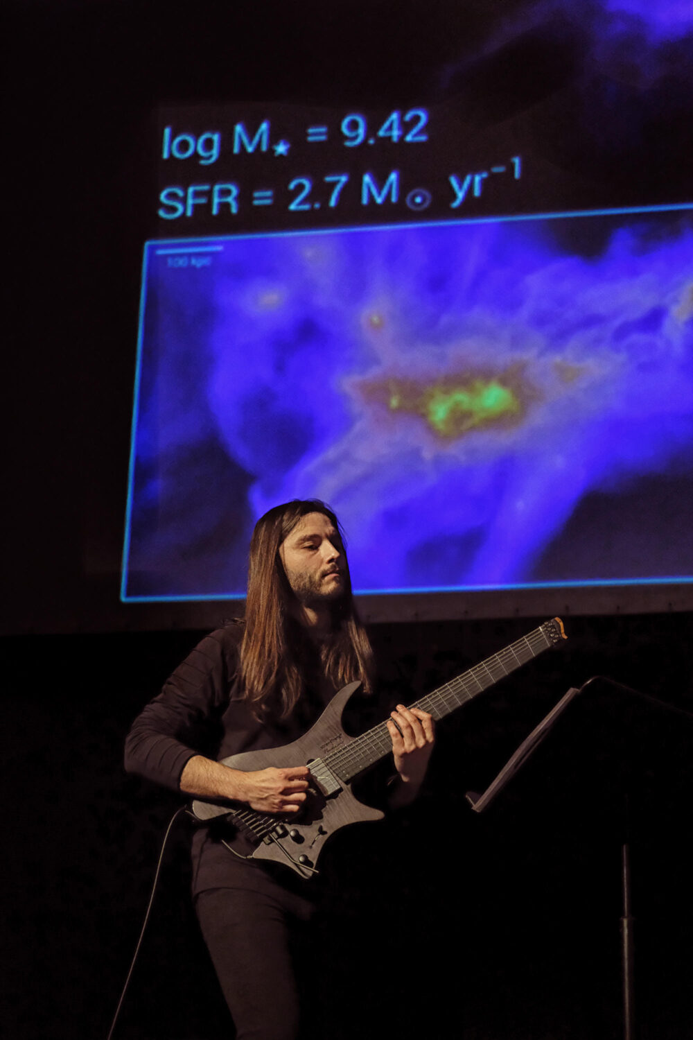 One element that has been refined and expanded is the aforementioned “emphasis on time linearity manipulation” detailed in Collisions and Contradictions’ liner notes. Another vital component of Domene’s solo work is the “orchestral aspect,” “specifically the aim of perceived size, impact and dimension of the music as you listen to it through speakers or live.” Domene continues: “I work really hard on crafting a sound that comes across as huge as it possibly can be while retaining crystalline detail, making full use of the stereo field as much as possible, aiming for three-dimensionality in my guitar sound by creatively using several types of delays, LFOs, and mid-side processing, deep mixing, among other techniques, which contribute to a listening experience through which the audience might distinguish the width, depth, movement and height of the guitar as if it was some kind of electric and synthetic orchestra.”