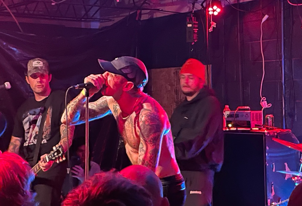 Those mixed bills don’t always work, though. I arrive at the Canal Club just as Omaha’s Bib are launch into their set. Bib fucking rule. They’re up there with Gel, Spy, and Gag in the pantheon of fast, feral new-jack hardcore punk bands with three-letter names. Their records sound a bit like early Agnostic Front, if those guys were weird stoners instead of tough skinheads and if they poured gallons of reverb all over everything. When Bib play the right room, people go bugnuts. When they play the wrong room, you get what you have here tonight: One guy in a skeleton costume intrepidly attempting to mosh around while everyone else stands still. Without getting desperate about it, Bib ask people in the crowd, sometimes individually, to come up front and move around. Eventually, it works. By the time their set is over, Bib get a decent little pit going. Still, those first few minutes were rough. You never want to be at a hardcore show where people aren’t moving.