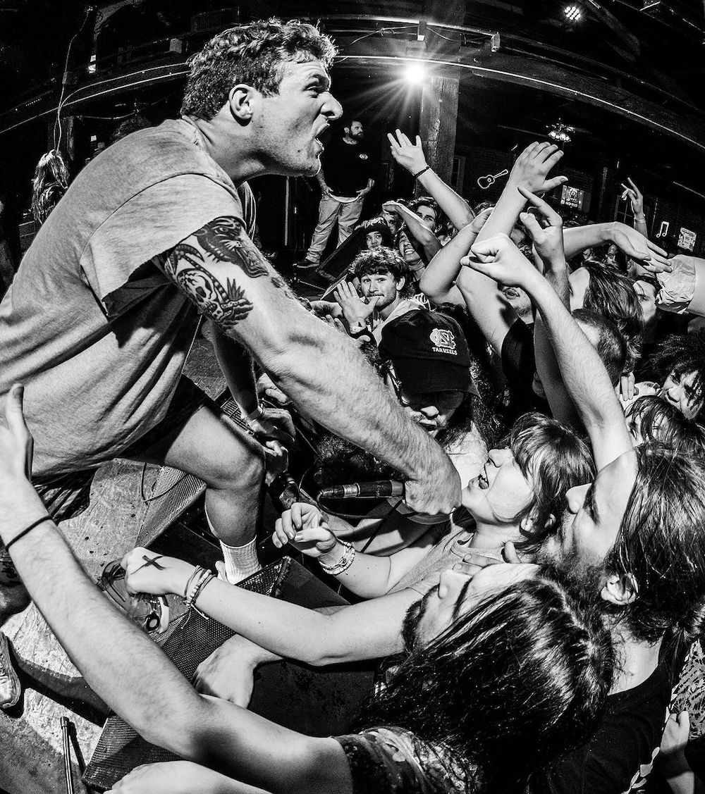 At the end of the night, Ciaramitaro was determined to take full advantage of a stage with no barrier, so he got as many people in the crowd as possible to run up onstage during “California Cursed,” to the point where you could see any of the band members amidst all the flailing limbs. People were moshing onstage. People were crowdsurfing onstage. One of the major tenets of hardcore, not just as a style of music but also as a culture and a philosophy, is that there’s no division between performer and audience. In the closing moments of that Drain show, that idea became real life, and it was beautiful.